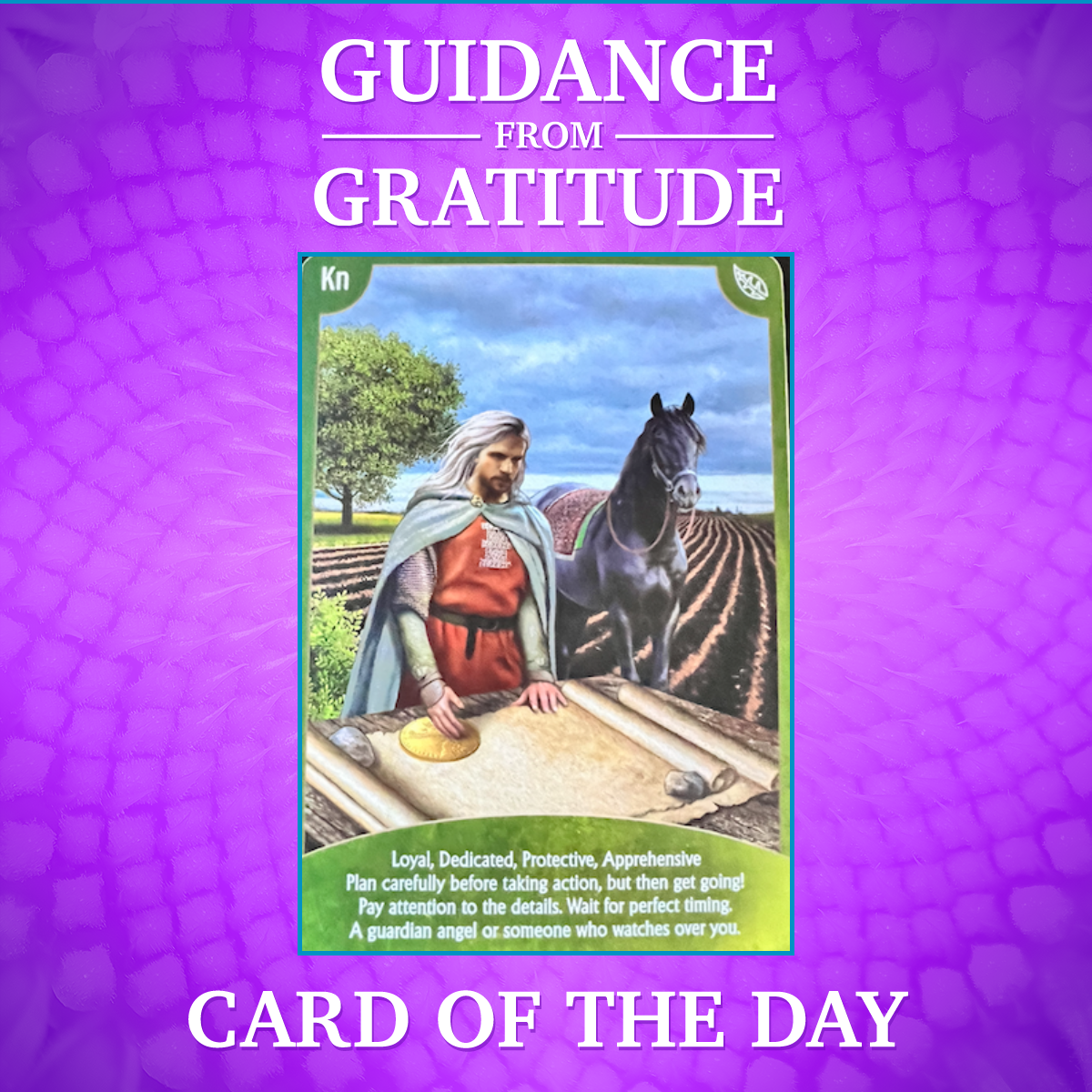 It reminds me of the Knight of Earth in Radleigh Valentine’s Angel Wisdom Tarot. In that card the knight stands beside his horse studying the map before moving forward. He isn’t rushing ahead. He’s pausing long enough to understand the path. The journey hasn’t stopped. It has simply become more intentional.